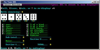 Yahtzee, like Guess What, was one of two modules included with The Major BBS 6.25 for UNIX.